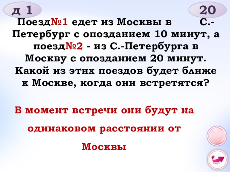 В момент встречи они будут на одинаковом расстоянии от Москвы