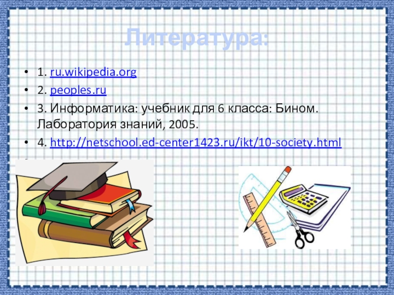 Это сайт презентаций, где можно хранить и обмениваться своими презентациями, докладами, проектами, шаблонами в формате PowerPoint с другими пользователями. Мы помогаем школьникам, студентам, учителям, преподавателям хранить и обмениваться учебными материалами.