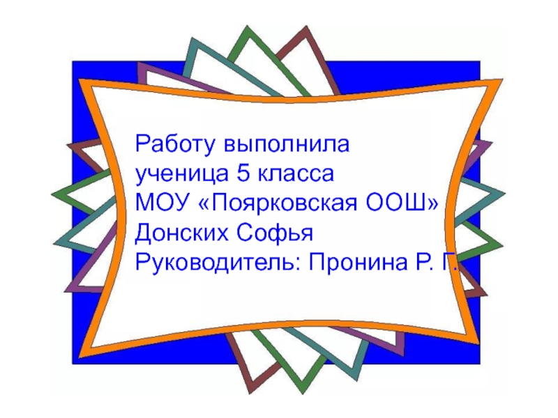 Работу выполнилаученица 5 классаМОУ «Поярковская ООШ»Донских СофьяРуководитель: Пронина Р. Г.