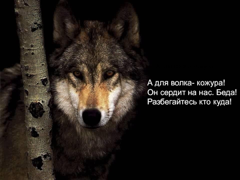 ААА для волка- кожура!А для волка- кожура!Он сердит на нас. Беда!Разбегайтесь кто куда!