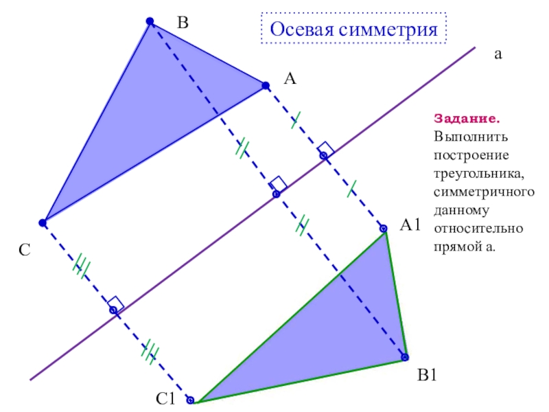 Точка А симметрична точке А1 относительно прямой а.
