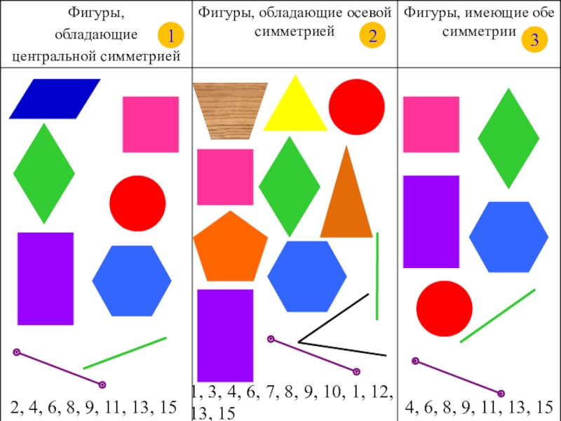 Задание. Из данных фигур выберите те, которые имеют ось симметрии. Есть ли среди них такие, которые имеют более одной оси симметрии?