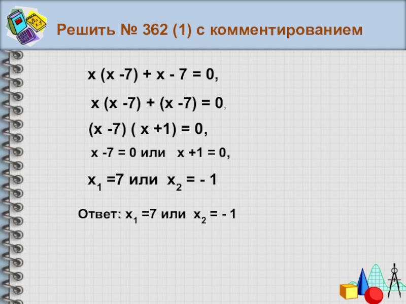 х (х -7) + х - 7 = 0,