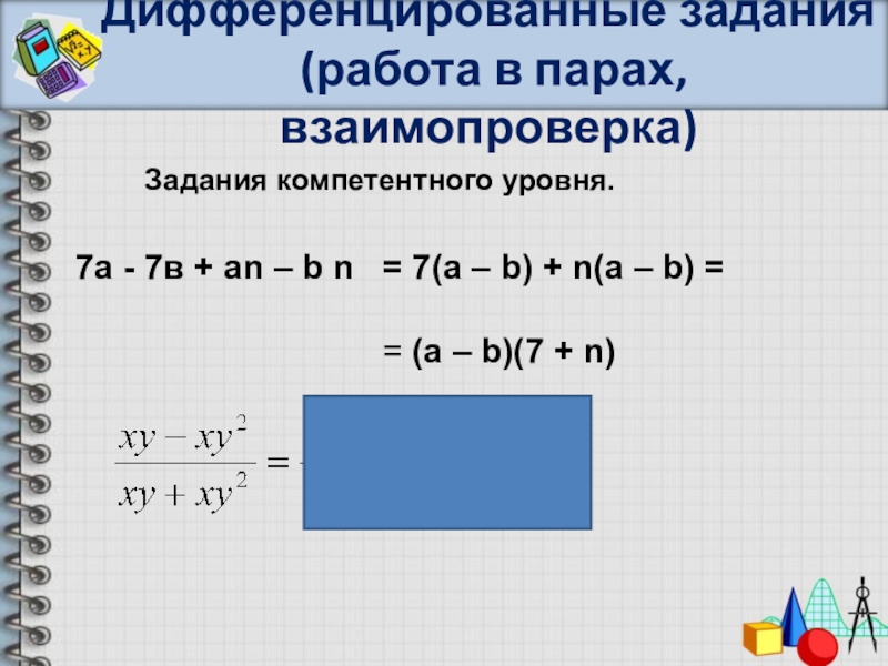 с) в получившемся выражении найти общий множитель и вынести его за скобки