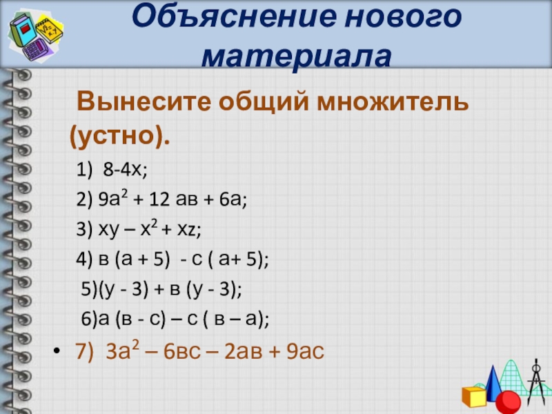 Вынести общий множитель за скобки