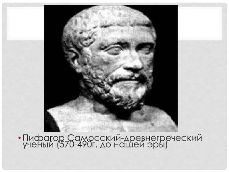 Слайд 29Пифагор Самосский-древнегреческий ученый (570-490г. до нашей эры)