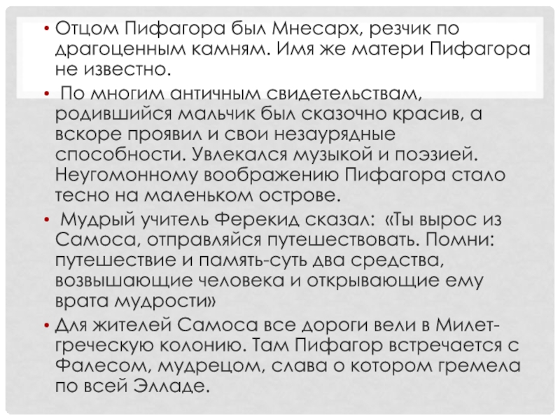 Слайд 31Отцом Пифагора был Мнесарх, резчик по драгоценным камням. Имя же матери