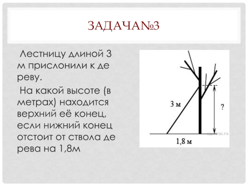 метрах) находится верхний её конец, если нижний конец отстоит от ствола дерева на 1,8м