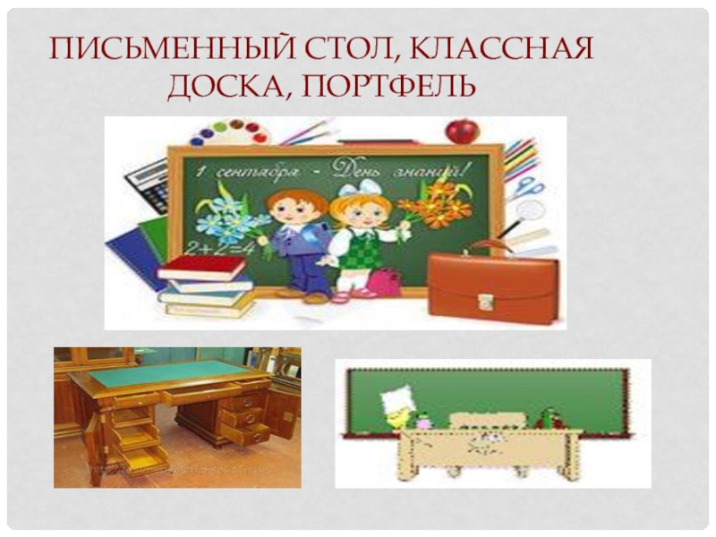 Слайд 6Письменный Стол, классная доска, портфель