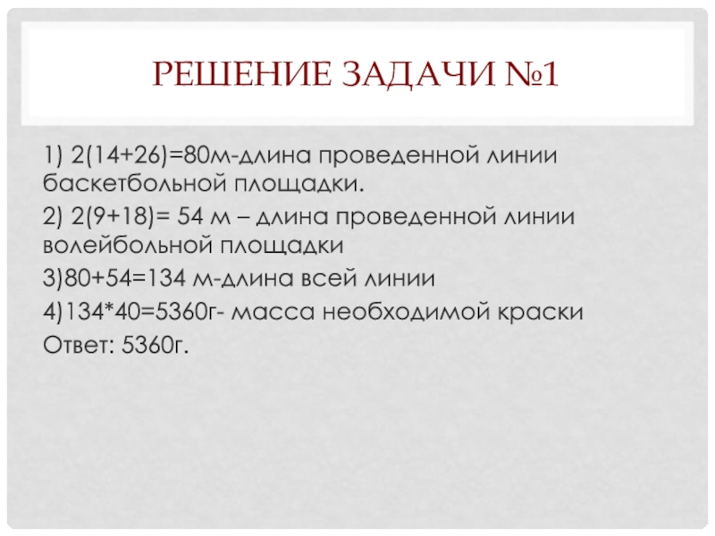 1) 2(14+26)=80м-длина проведенной линии баскетбольной площадки.