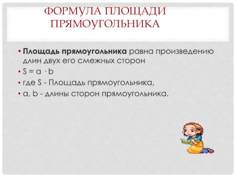 Слайд 19Формула площади прямоугольника
