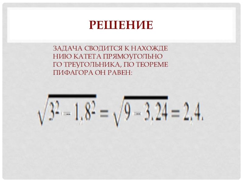 Задача сводится к нахождению катета прямоугольного треугольника, по теореме Пифагора он