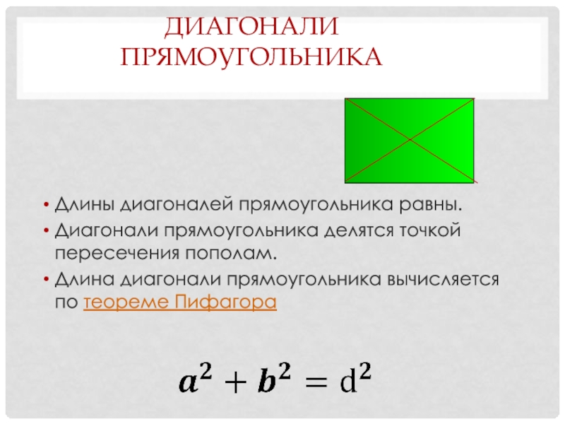 прямоугольника вычисляется по теореме Пифагора