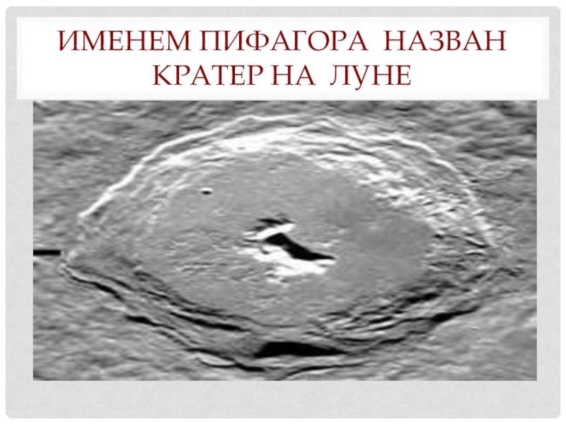 Слайд 37Именем Пифагора назван кратер на Луне