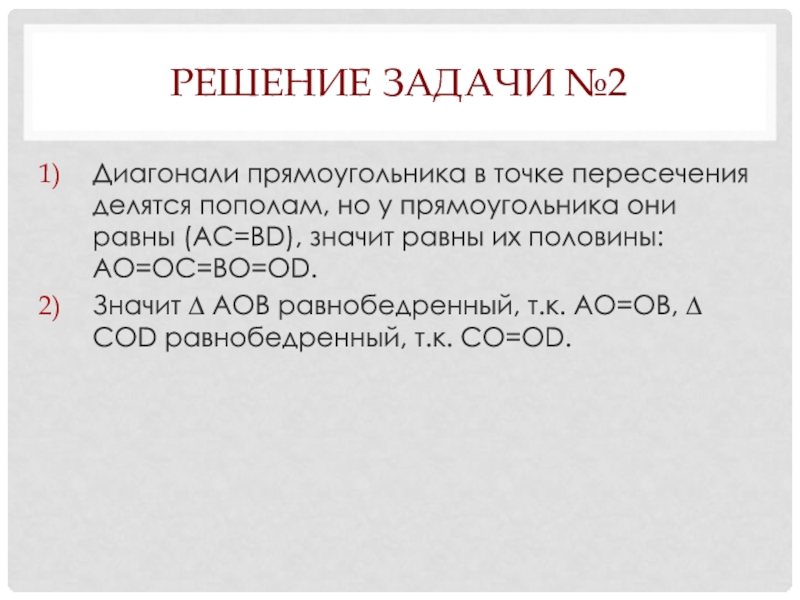 Значит ∆ АОВ равнобедренный, т.к. АО=ОВ, ∆ СОD равнобедренный, т.к. СО=ОD.