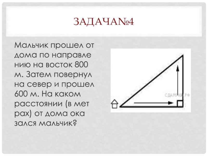 повернул на север и прошел 600 м. На каком расстоянии (в метрах) от дома оказался мальчик?