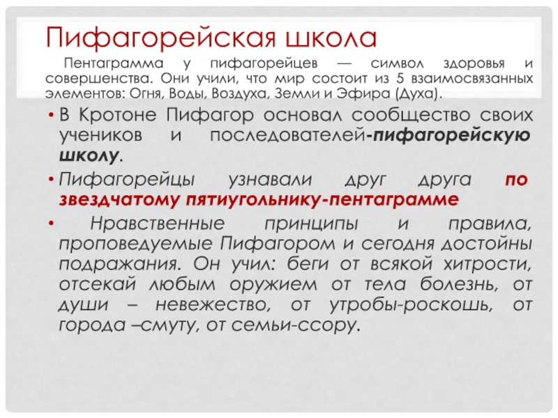 Слайд 34Пифагорейская школа
