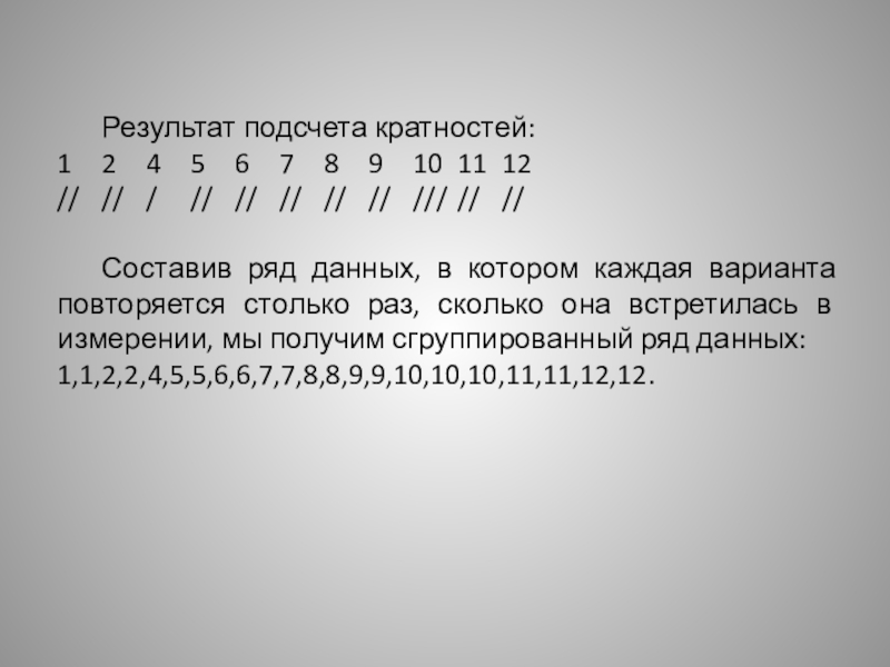 раз, сколько она встретилась в измерении, мы получим сгруппированный ряд данных: