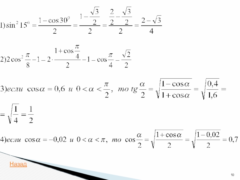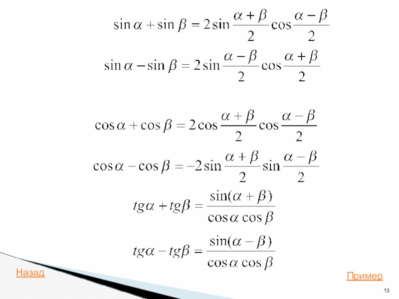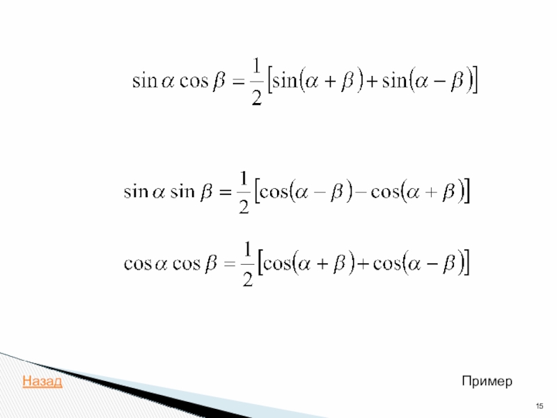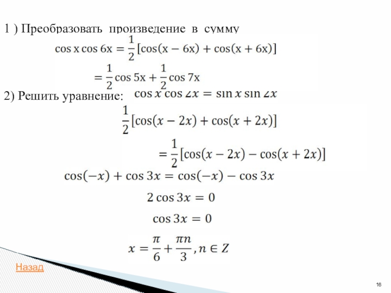 1 ) Преобразовать произведение в сумму2) Решить уравнение:16Назад