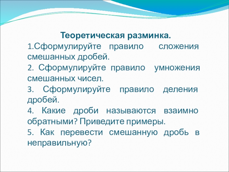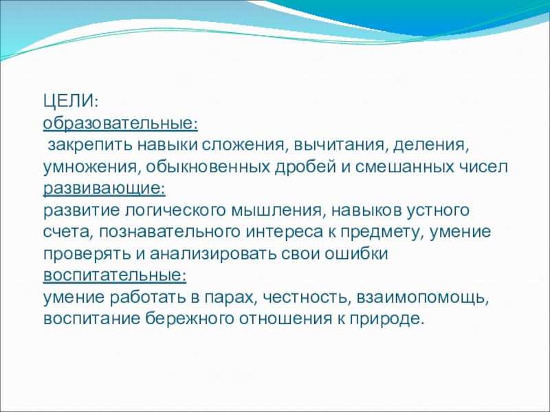 закрепить навыки сложения, вычитания, деления, умножения, обыкновенных дробей и смешанных