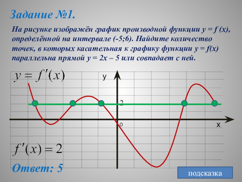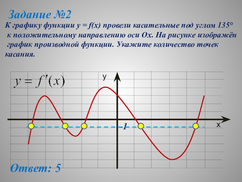 5. Касательная параллельна оси ОX, либо с ней совпадает. Следовательно, • • •