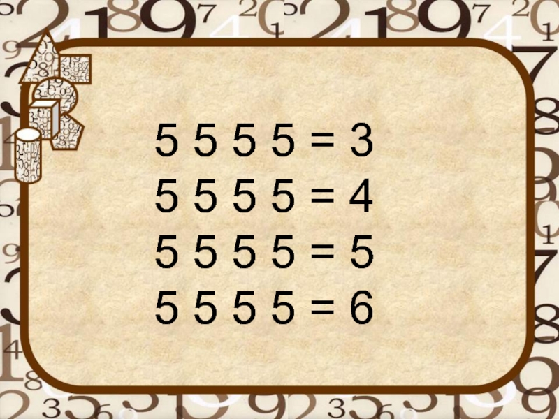 5 5 5 5 = 35 5 5 5 = 45 5 5 5 = 55 5