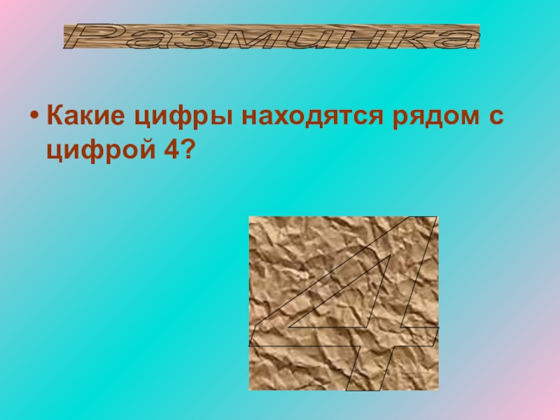 Разминка Какие цифры находятся рядом с цифрой 4?4