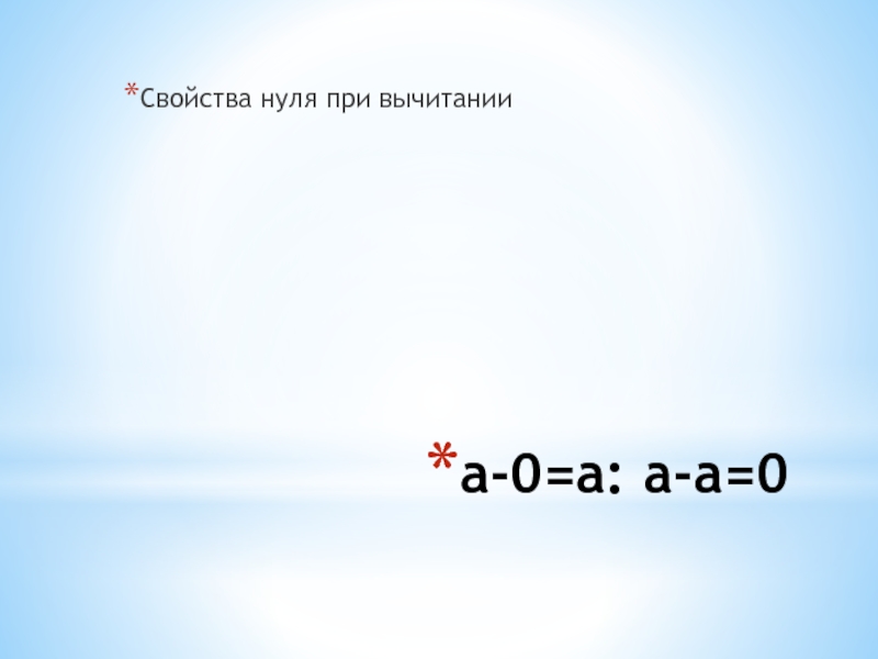 a-0=a: a-a=0Свойства нуля при вычитании