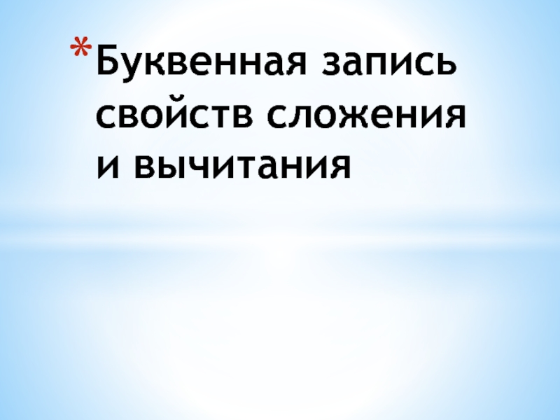 Слайд 1Буквенная запись свойств сложения и вычитания