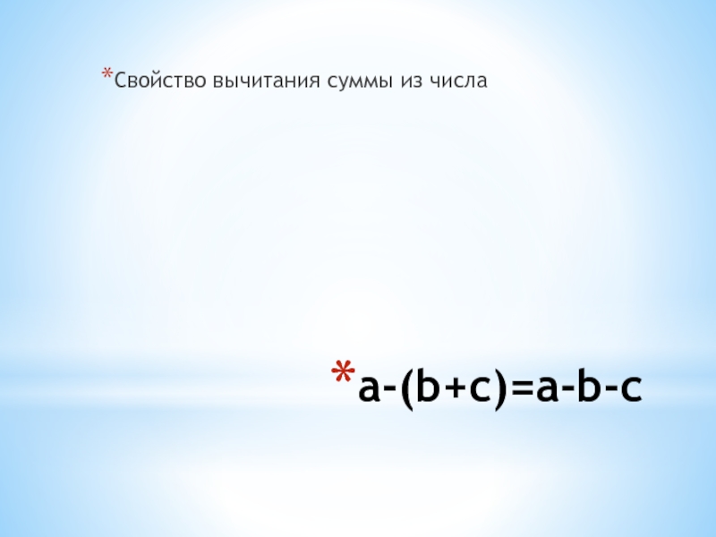 a-(b+c)=a-b-cСвойство вычитания суммы из числа