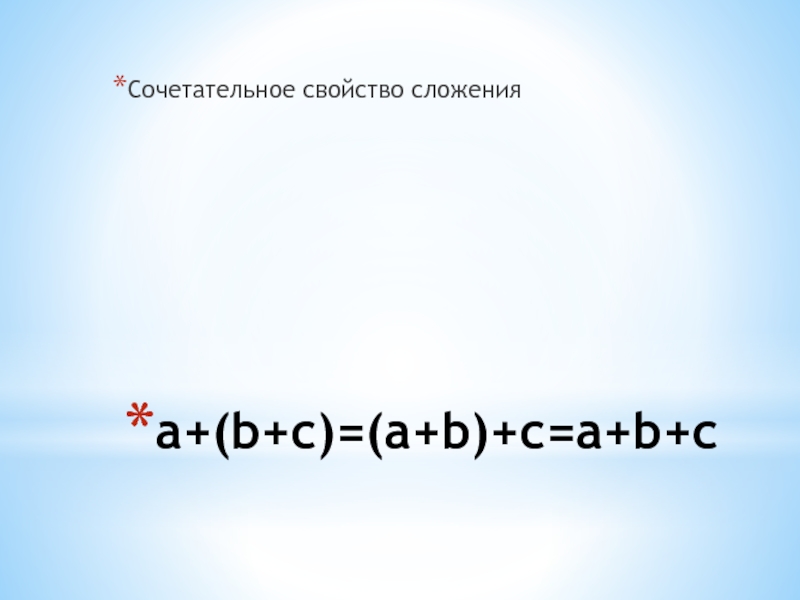 Слайд 3a+(b+c)=(a+b)+c=a+b+c