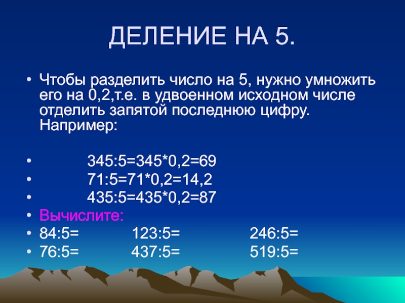 Слайд 4ДЕЛЕНИЕ НА 5.
