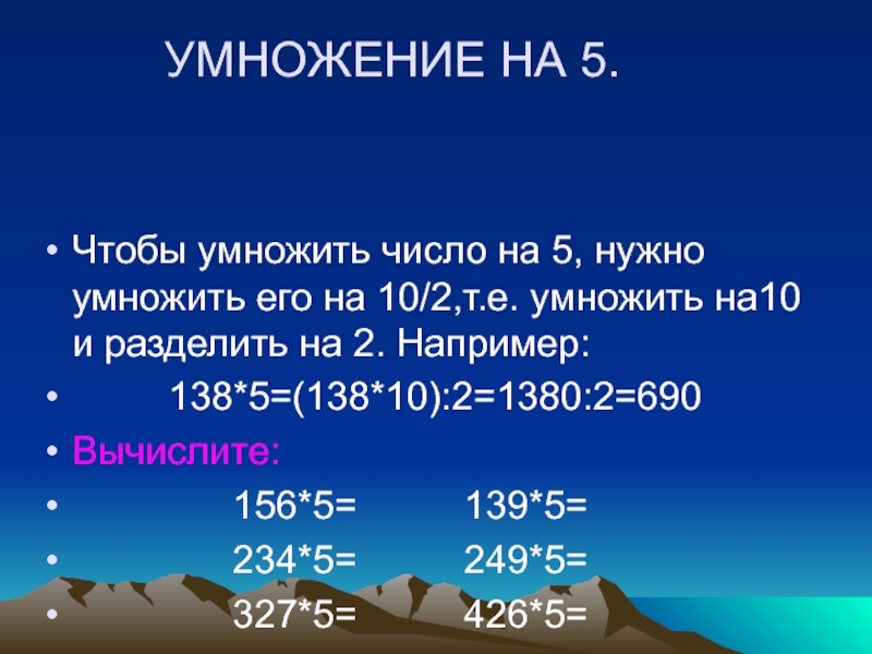 Слайд 3УМНОЖЕНИЕ НА 5.