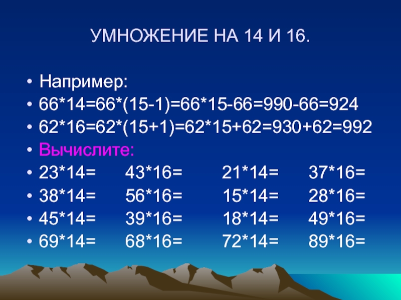 Слайд 9УМНОЖЕНИЕ НА 14 И 16.