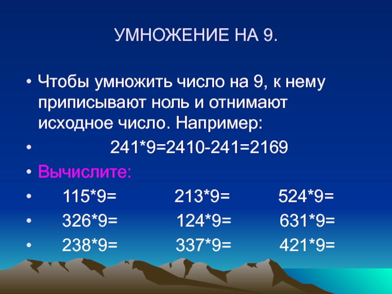 Слайд 5УМНОЖЕНИЕ НА 9.