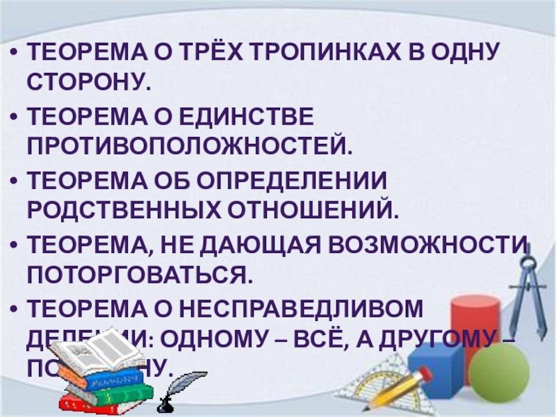 Теорема о несправедливом делении: одному – всё, а другому – половину.