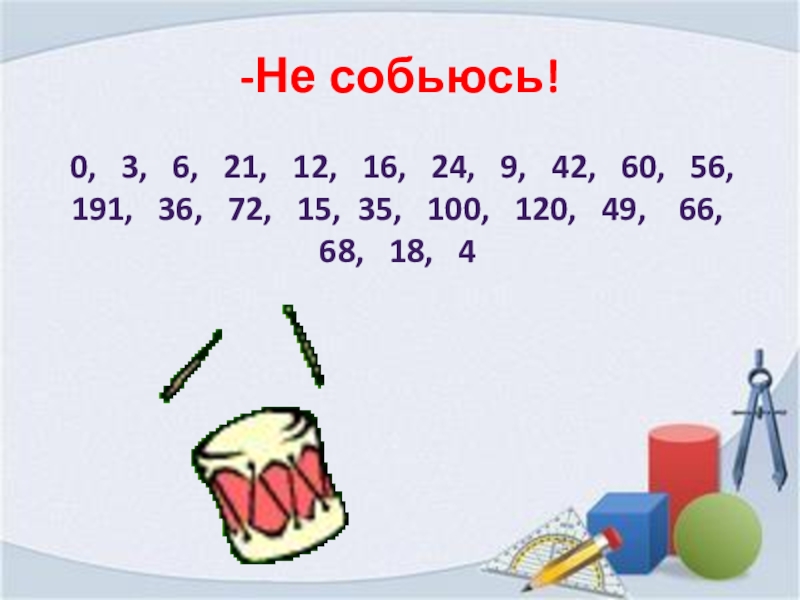 12, 16, 24, 9, 42, 60, 56, 191, 36, 72, 15, 35, 100, 120, 49, 66, 68, 18, 4