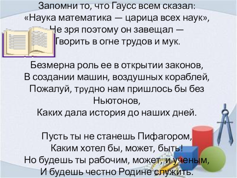 Слайд 24Запомни то, что Гаусс всем сказал: