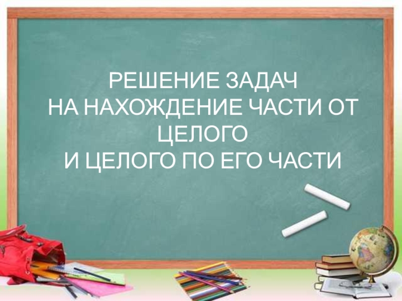 РЕШЕНИЕ ЗАДАЧ НА НАХОЖДЕНИЕ ЧАСТИ ОТ ЦЕЛОГО И ЦЕЛОГО ПО ЕГО ЧАСТИ