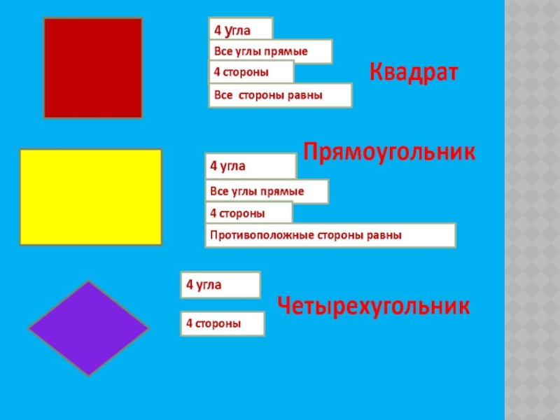 Презентация, доклад по математике на тему: Четырёхугольники (2 класс)