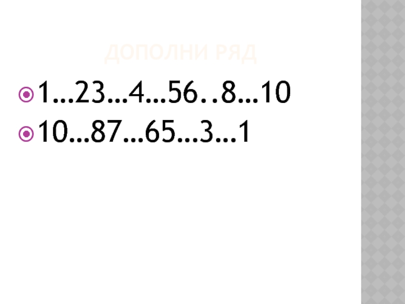 Дополни ряд1…23…4…56..8…1010…87…65…3…1