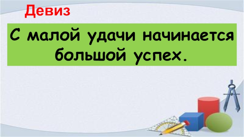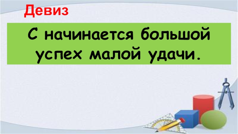 Девиз урока:С малой удачи начинается большой успех.С начинается большой успех малой удачи.