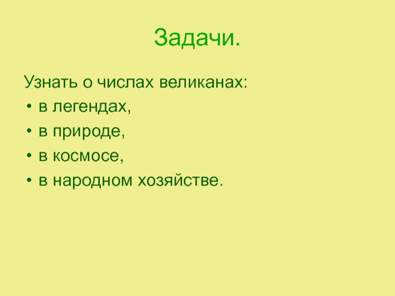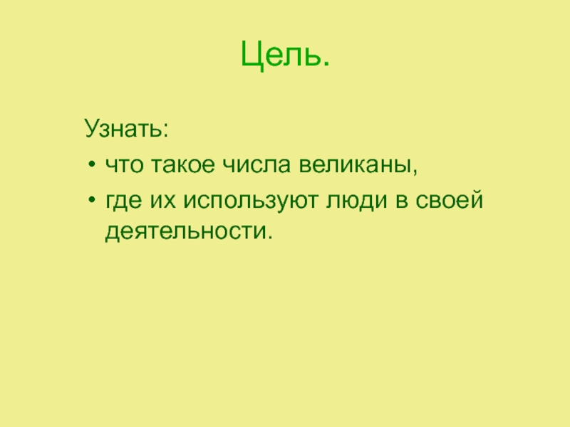 В презентации мы расскажем о том, что такое числа великаны, источники их происхождения и о многом другом.