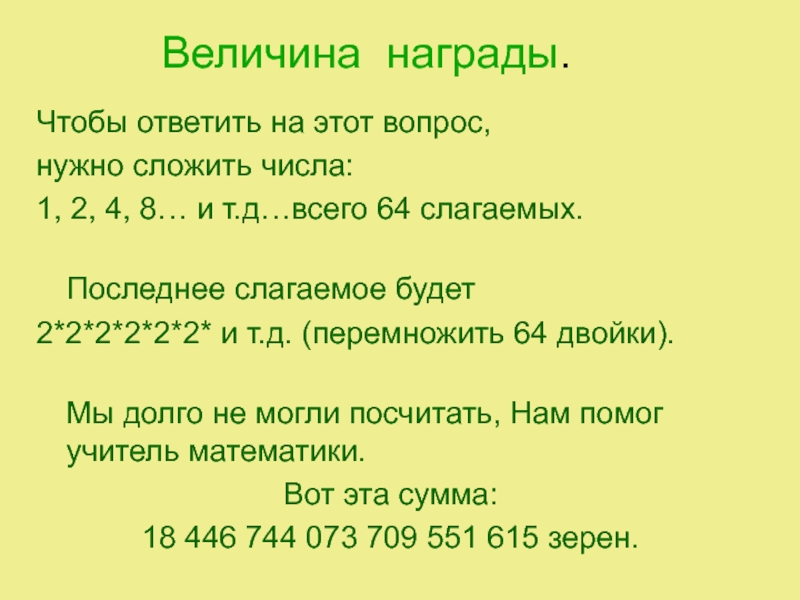 Слайд 14Огромное число зёрен.