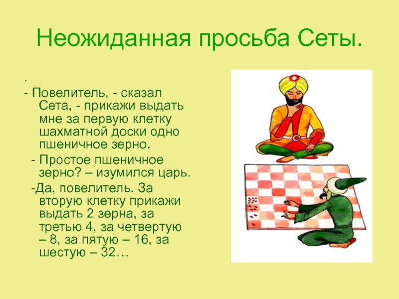 Слайд 12Неожиданная просьба Сеты.