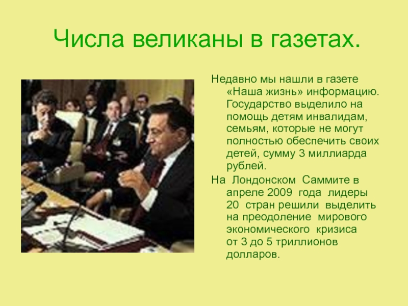 Слайд 29 Числа великаны в газетах.