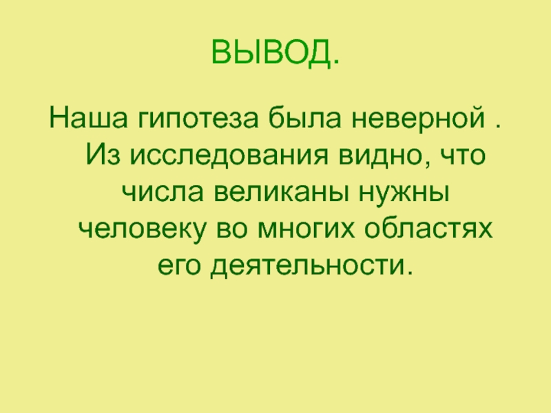 Наша гипотеза была неверной . Из исследования видно, что числа великаны