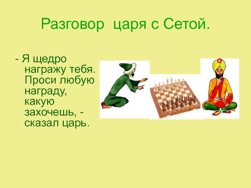 Когда мудрец назвал требуемое количество зерен, царь Шерам понял, что он действительно не может выдать Сете обещанную награду.