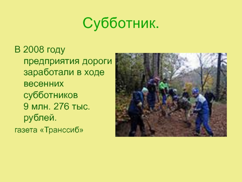 В 2008 году предприятия дороги заработали в ходе весенних субботников