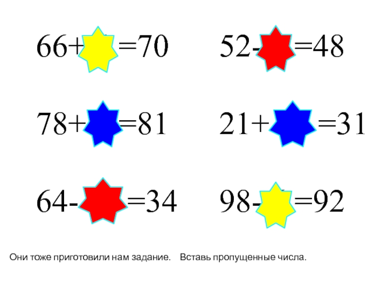 Они тоже приготовили нам задание. Вставь пропущенные числа.